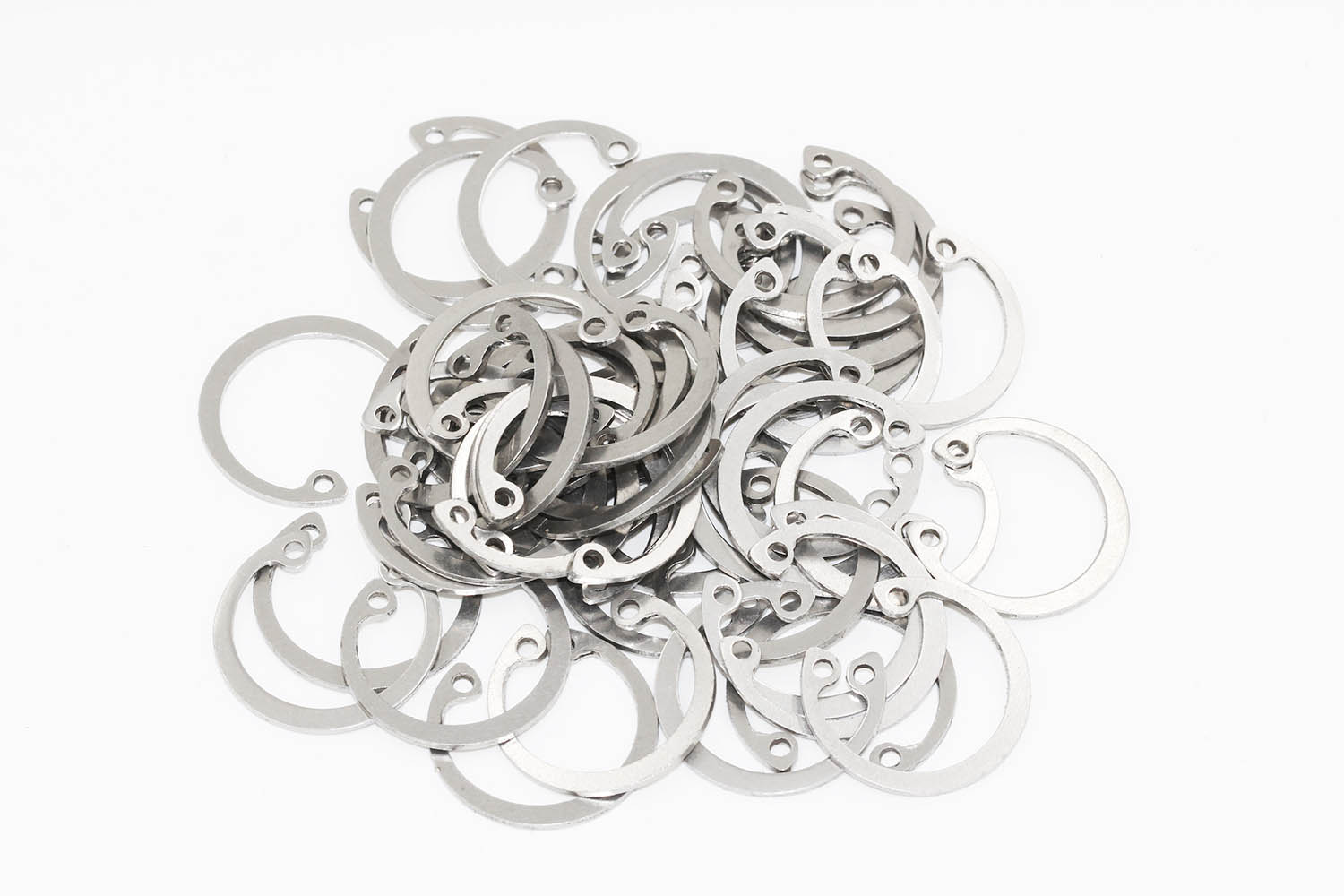 擋圈又稱卡簧,分為孔用擋圈和軸用擋圈,起軸向限位作用,可以防止其他零件軸向竄動(dòng)。成型工藝多采用板材沖切,功能截面呈錐形,裝配后多為“線性接觸”部分大規(guī)格型號(hào)采用線材纏繞成型,沖切多余材料的工藝制成,截面呈規(guī)則矩形,裝配后為“面接觸”。