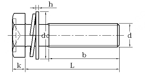 常用十字槽凹穴六角頭螺栓、彈簧墊圈和平墊圈組合件是指帶十字槽外六角螺栓彈平墊組合螺絲。簡稱組合螺栓。國標(biāo)號為GB9074.12.還有一另常用的外六角組合螺絲,國標(biāo)號為GB9074.17.是指切邊外六角組合螺絲。也就是說不帶十字的外六角組合螺栓。