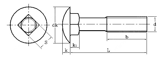 半圓頭方頸螺栓又稱為馬車螺栓,頭部為半圓頭型,底下是方頸。馬車螺栓有很好的固定效果,方頸正好卡住螺栓方便螺母擰緊。同時也有很好的防盜效果,因為頭部為半圓型,沒有凹槽?捎糜阼F木結(jié)構(gòu)連接,如汽車,紡織機器,面粉機器,救生艇等。
