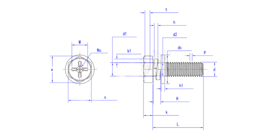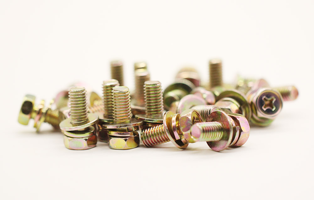 常用十字槽凹穴六角頭螺栓、彈簧墊圈和平墊圈組合件是指帶十字槽外六角螺栓彈平墊組合螺絲。簡稱組合螺栓。國標號為GB9074.13.還有一另常用的外六角組合螺絲,國標號為GB9074.17.是指切邊外六角組合螺絲。也就是說不帶十字的外六角組合螺栓。